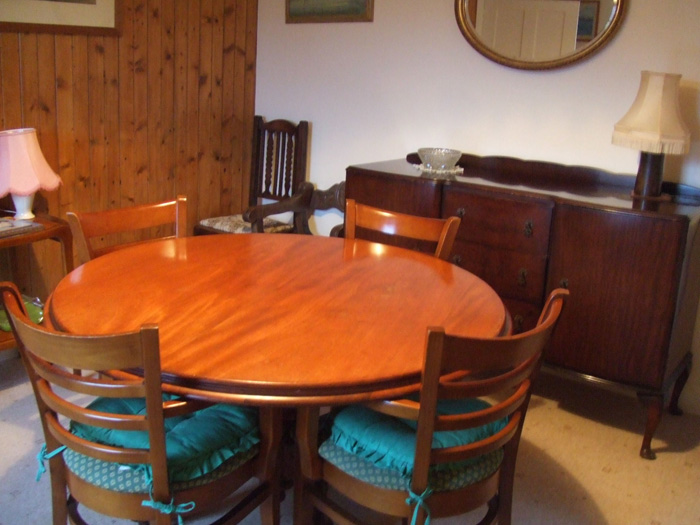 Downstairs - Comfortable sitting room with leather sofa & 2 armchairs, TV, DVD & a coal fire. Dining-room with seating for six. Well-equipped kitchen with electric cooker, microwave & fridge.